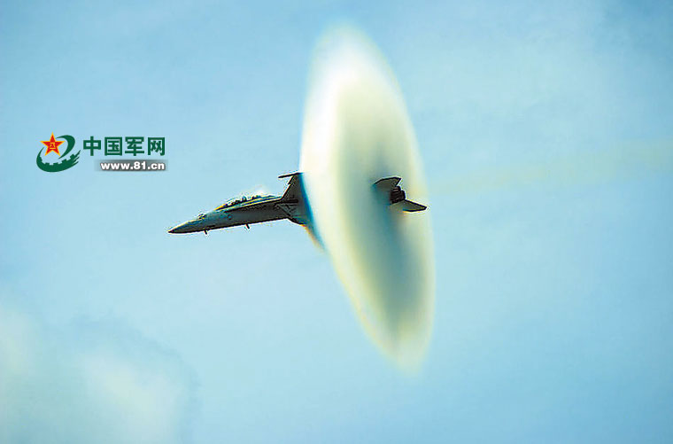 上图:一名摄影师花了5年时间才成功拍摄出F-18“超级大黄蜂”战机突破音速时,被一团水汽凝结成的“云雾”所包围的照片。这种“云雾”仅当飞机突破音速时瞬间存在。本报资料照片