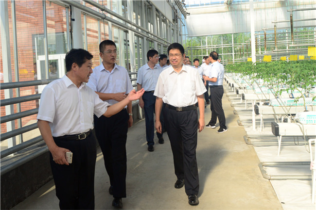 八月的青岛西海岸,处处郁郁葱葱、欣欣向荣。在西海岸现代农业示范区工委书记李学聚、示范区管委主任毕吉锋等负责同志陪同下,张宪省一行实地调研了西海岸省级农业高新技术产业开发区,参观了位于示范区内的科技园。这里建有国内科技含量最高的智能蔬菜种植“工厂”,面积达3.5万平方米,约52.5亩,“工厂”又细分成一个个“车间”。张宪省与陪同人员边走边谈,不时交流。