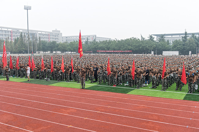 9月3日上午,2018级本科新生军训开营式先后在南校区体育场和东校区体育场举行。党委副书记杨天梅,军训团团长、32101部队副营长张超,以及学校有关部门和各学院负责同志出席仪式。