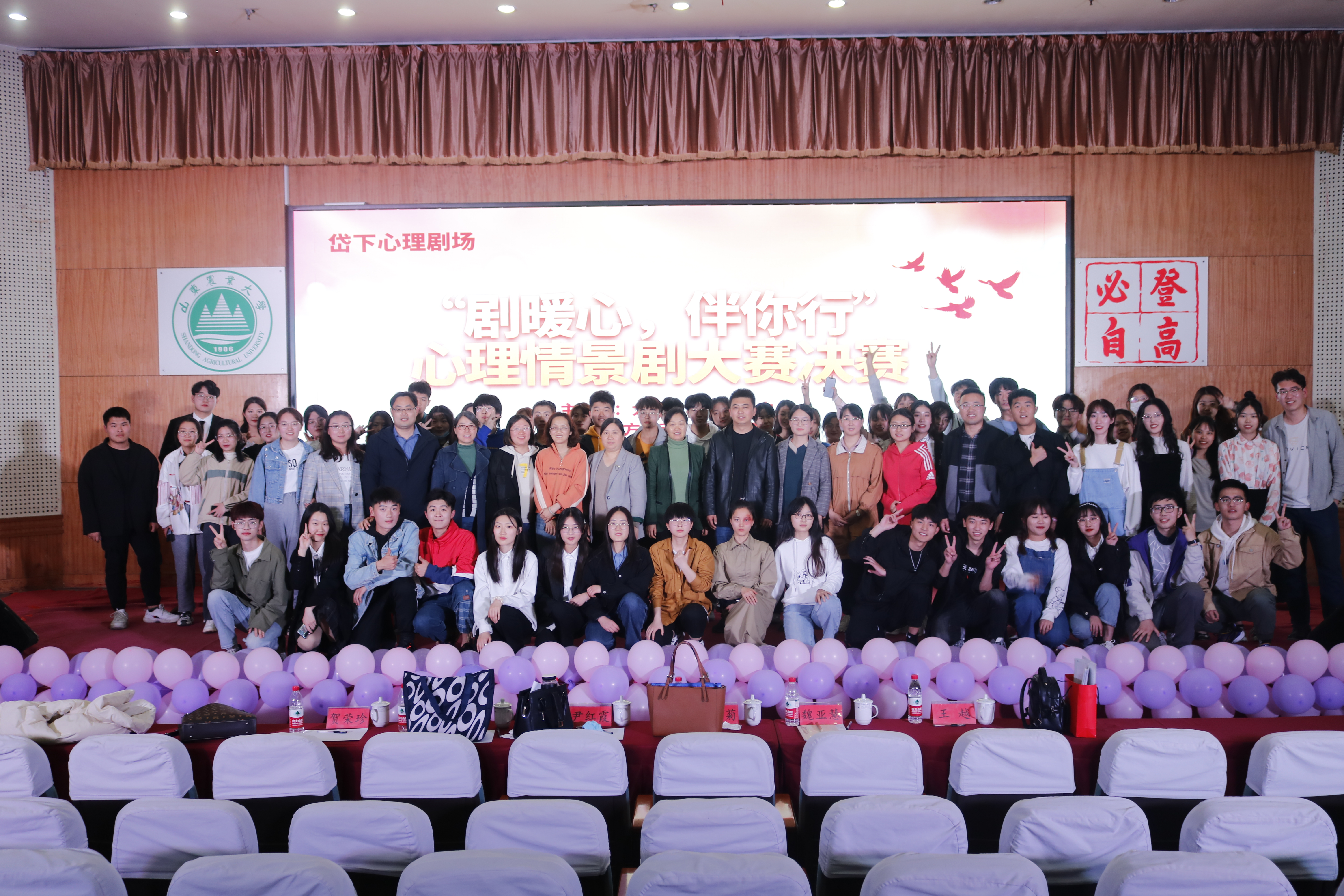 4月10日,由学校大学生心理教育中心主办,动物科技学院承办的岱下心理剧场“剧暖心,伴你行”心理情景剧大赛决赛于南校区图信楼第一学术报告厅举行。学工处副处长张安涛,动科学院党委副书记吴连军,大学生心理教育中心赵银及相关学院辅导员出席比赛,大学生心理教育中心王红菊、尹红霞、种晓蔚、魏亚慧、王越、贺荣珍担任评委。