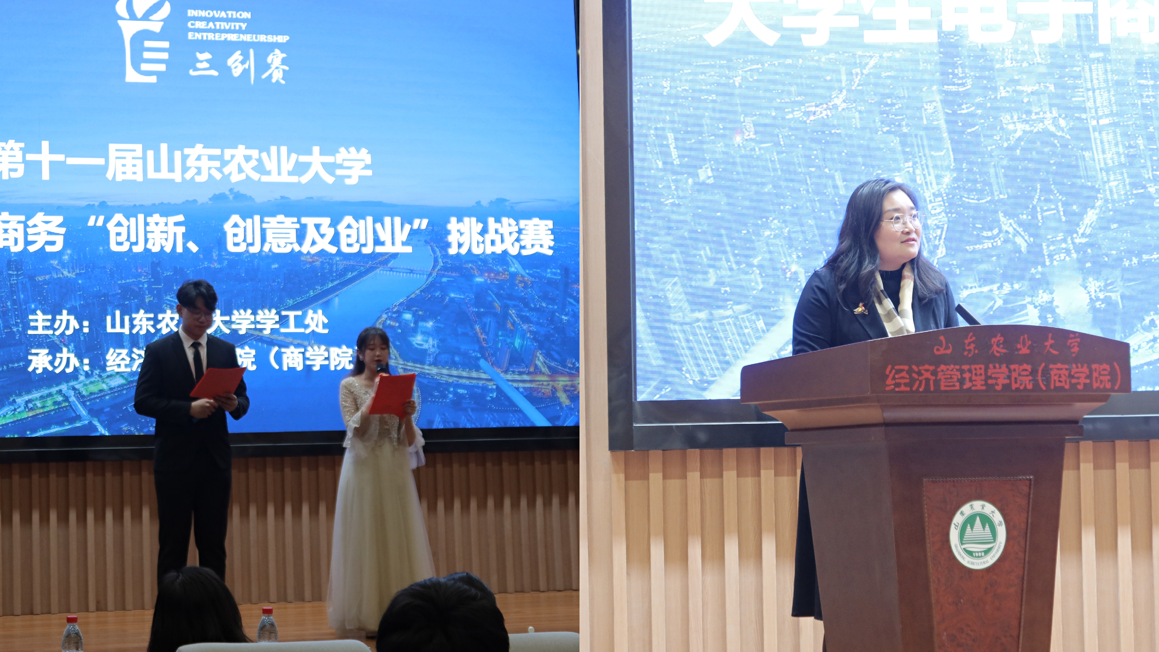 4月20日,由经济管理学院(商学院)承办的第十一届山东农业大学大学生电子商务“创新、创意及创业”挑战赛在西北片区第一学术报告厅隆重举行。本次大赛邀请山东省青年创业导师祖印玺老师、经管学院国贸系常昕老师、校学工处王晓庆老师、农学院程璐老师担任评委。学工处副处长姜芳、周维维,学院党委副书记贾元义出席比赛。