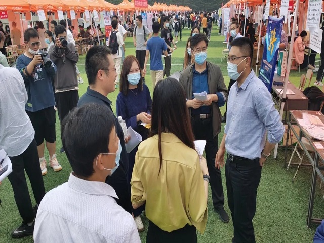 招聘会现场,学生与企业面对面对话,更有领导老师贴心指导。学院领导、系主任、专业老师走进招聘会现场,与学生共同研究探讨就业市场总体情况,询问各公司招聘方针政策,为毕业生提供经验意见。