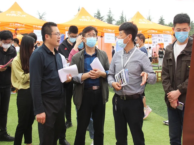 5月15日上午,2021年山东省农林水类毕业生就业市场于山东农业大学南校区体育场举办。本次招聘会共邀请企业560家,其中林学院需求本科生岗位数量979个,需求人数达四千余人,园林,林学,蚕学专业供需比例为1:10。林学院党委书记栗成良、院长鲁法典等领导老师到场对求职毕业生进行指导并与用人单位沟通交流。