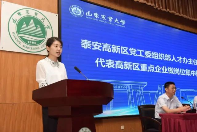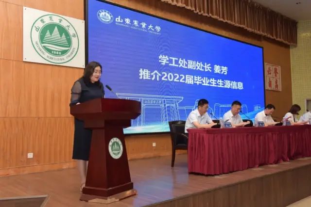 在信息发布会上,泰安市人力资源和社会保障局副局长杜彤、滨州市人力资源和社会保障局就业人才中心主任颜波分别发言,介绍当地人才政策及校地合作情况等。泰安高新区党工委组织部人才办主任李娟代表高新区重点企业做岗位集中推介,山东鲁抗医药股份有限公司党委副书记张杰、滨州戴森车轮科技有限公司副总经理庞国强、山东万豪集团人力资源部部长王西进分别发言,推介实习岗位和企业招聘计划,邀请学生前去实习、就业。学工处相关负责同志推介2022届毕业生就业信息,介绍校园招聘活动安排,邀请各用人单位来校招聘人才。