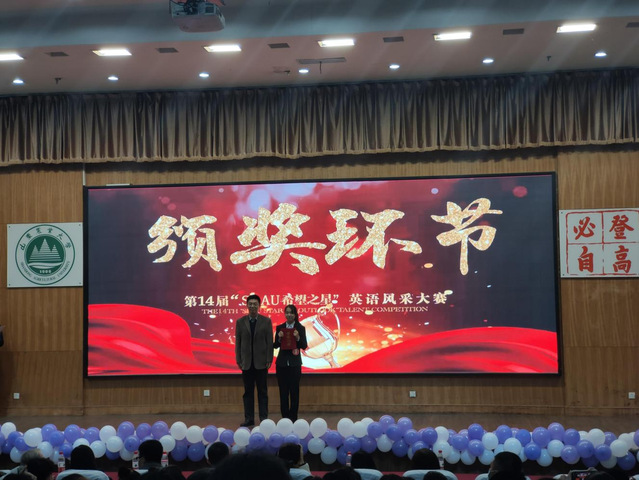 11月28日,由学工处、教务处、校团委主办,外语学院承办的山东农业大学第十四届“SDAU希望之星”英语风采大赛在泮河校区第一学术报告厅举办,学工处、校团委、教务处负责人,公管、园艺、生科、经管、资环等兄弟学院相关负责人、外语学院全体辅导员和各学院学生代表观看比赛。